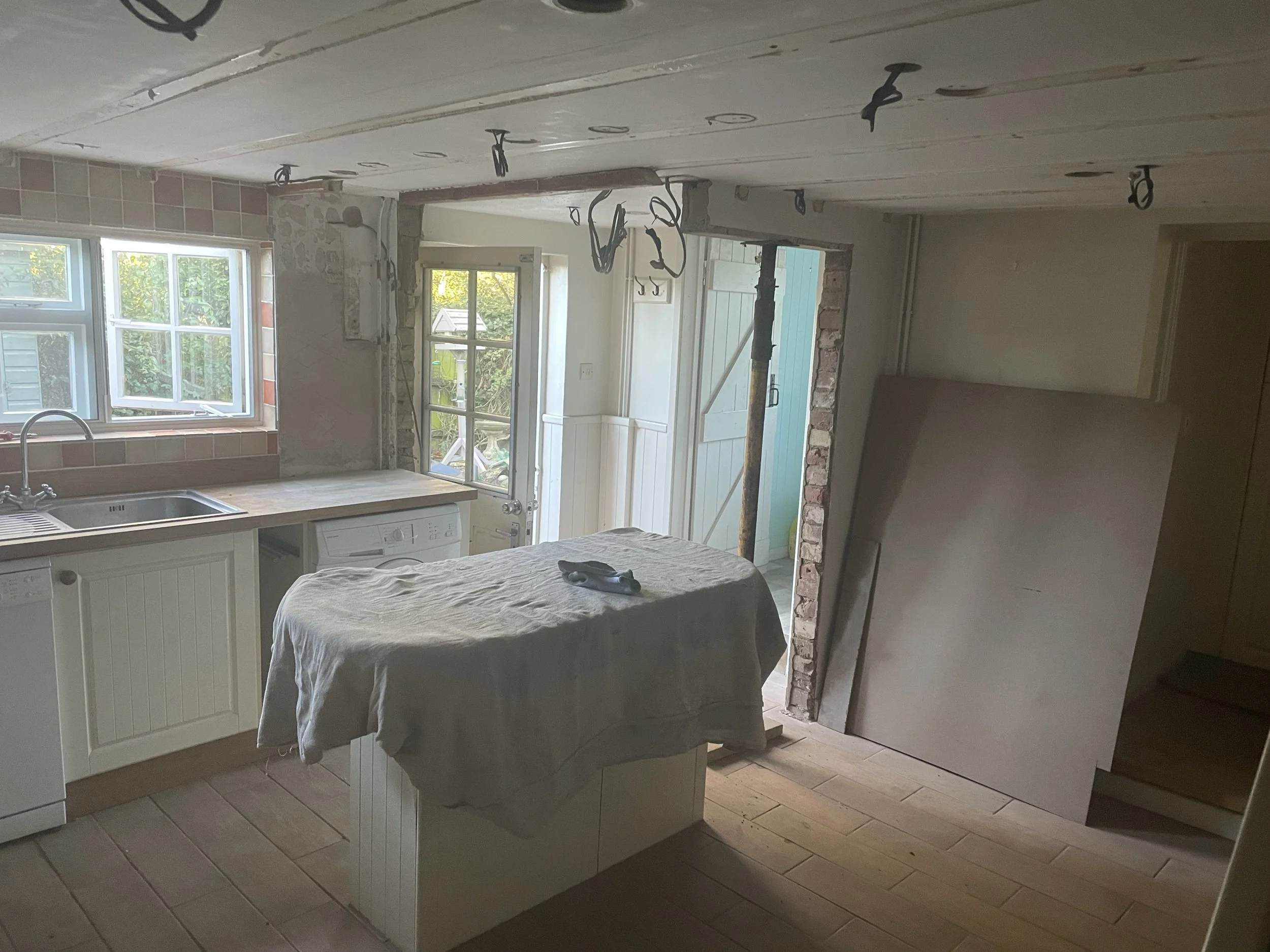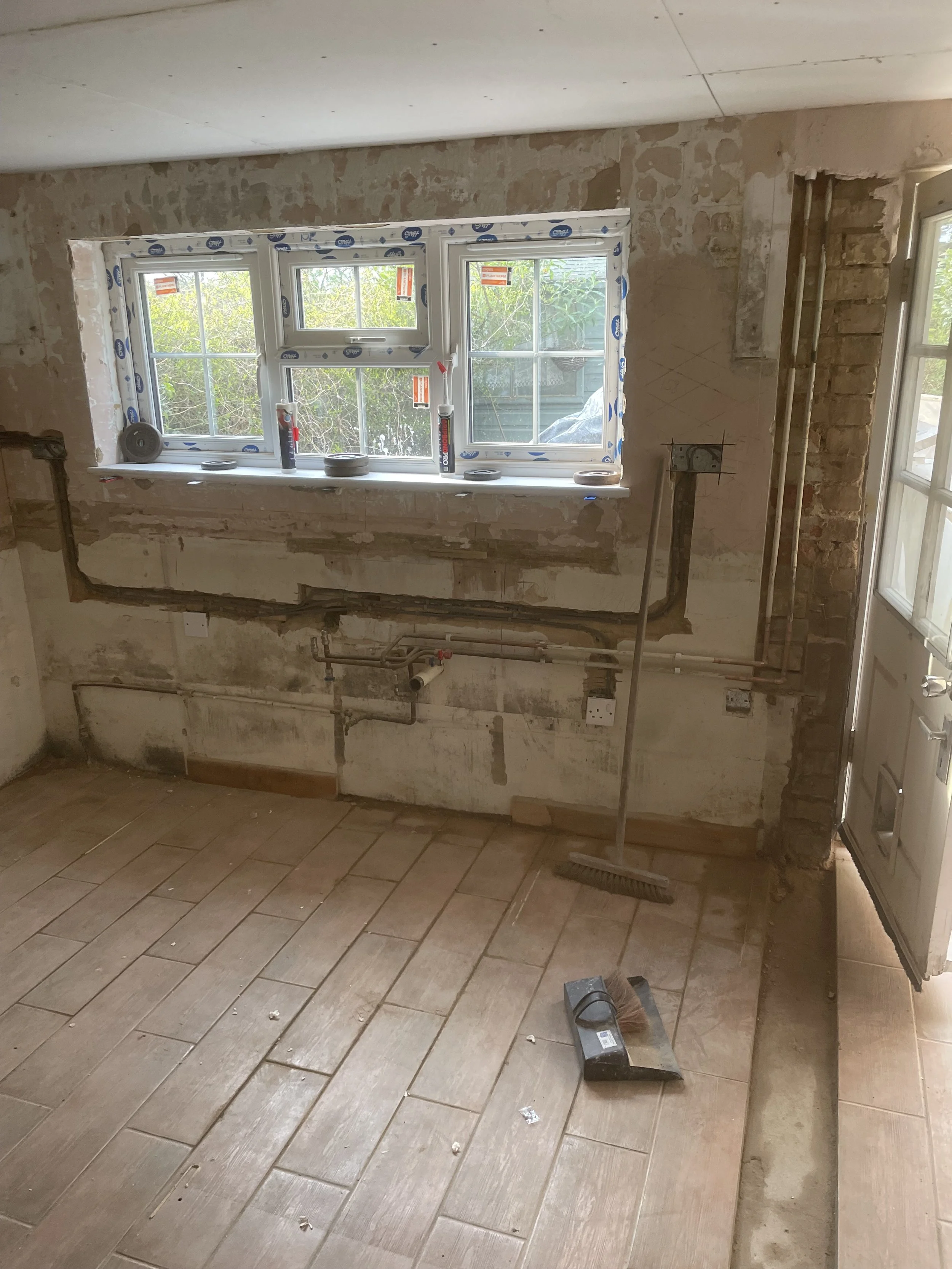 This was a little 1980's, extension on the back with an outdated bathroom, the kitchen was also in need of an upgrade and had a quirky internal porch. The plan was to block up the existing door and take out the porch to open up the kitchen.